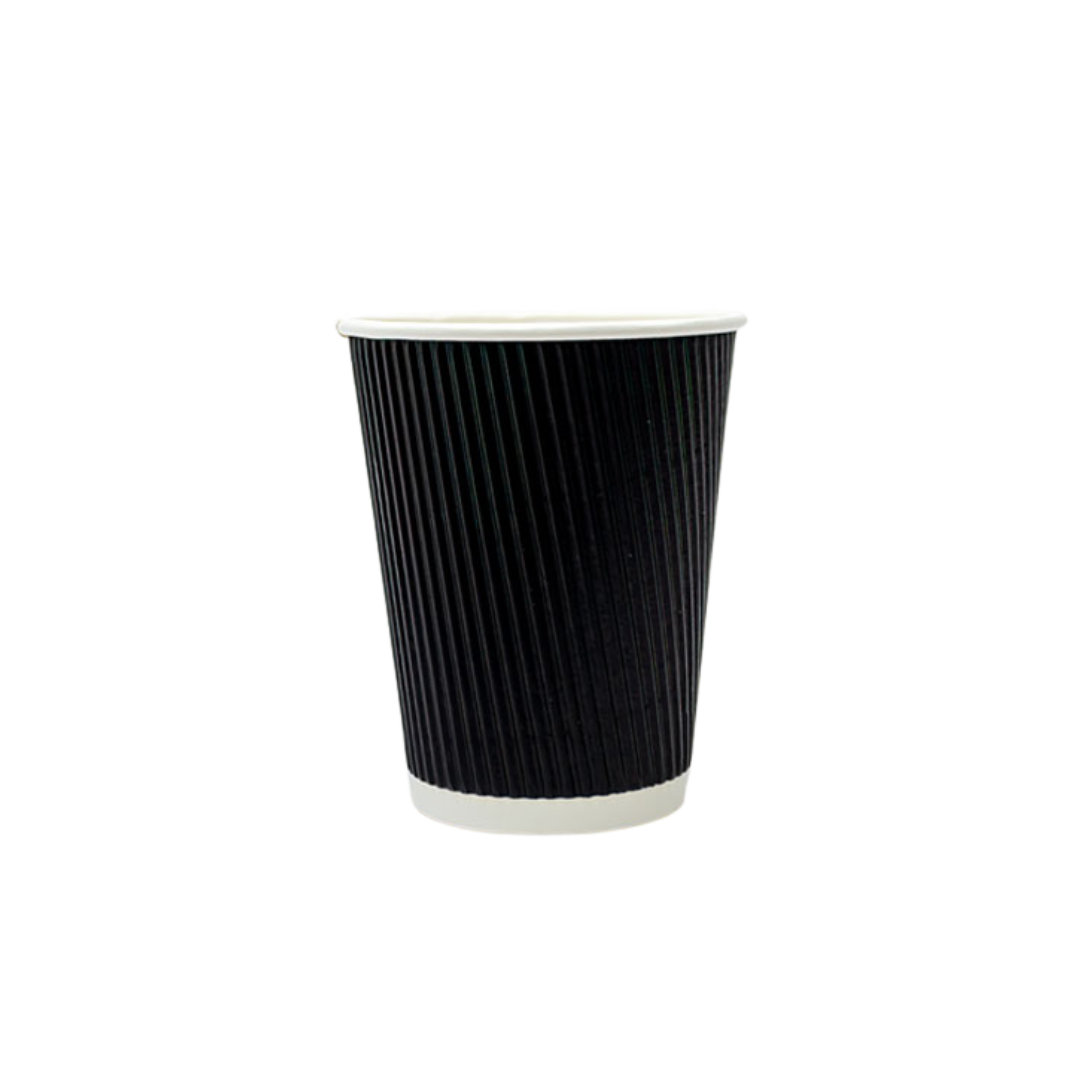 - Vasos corrugados con doble capa que mantienen la temperatura del café sin necesidad de manga.